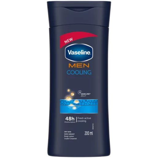 Vaseline Men Cooling Body Lotion 200 ml is a light, fast-absorbing body lotion specially designed for men’s skin that combines deep moisturisation with a refreshing cooling sensation. Formulated with menthol and moisturising ingredients like glycerin and petrolatum, it helps hydrate and soothe dry, rough or irritated skin while leaving a cool, refreshed feel without greasy residue — making it ideal for daily post-shower use or after physical activity. The non-greasy, quick-absorbing texture and subtle fresh scent make this lotion practical for everyday grooming routines and help keep skin smooth, comfortable, and resilient even in warm or dry conditions